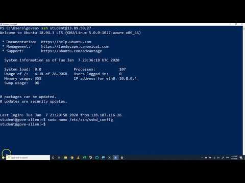 ssh-keygen ssh student@13.89.50.27 (Be sure to use your own ip address) sudo nano /etc/ssh/sshd_config sudo /etc/init.d/ssh reload exit ssh -o PubkeyAuthentication=no student@13.89.50.27 ssh student@13.89.50.27